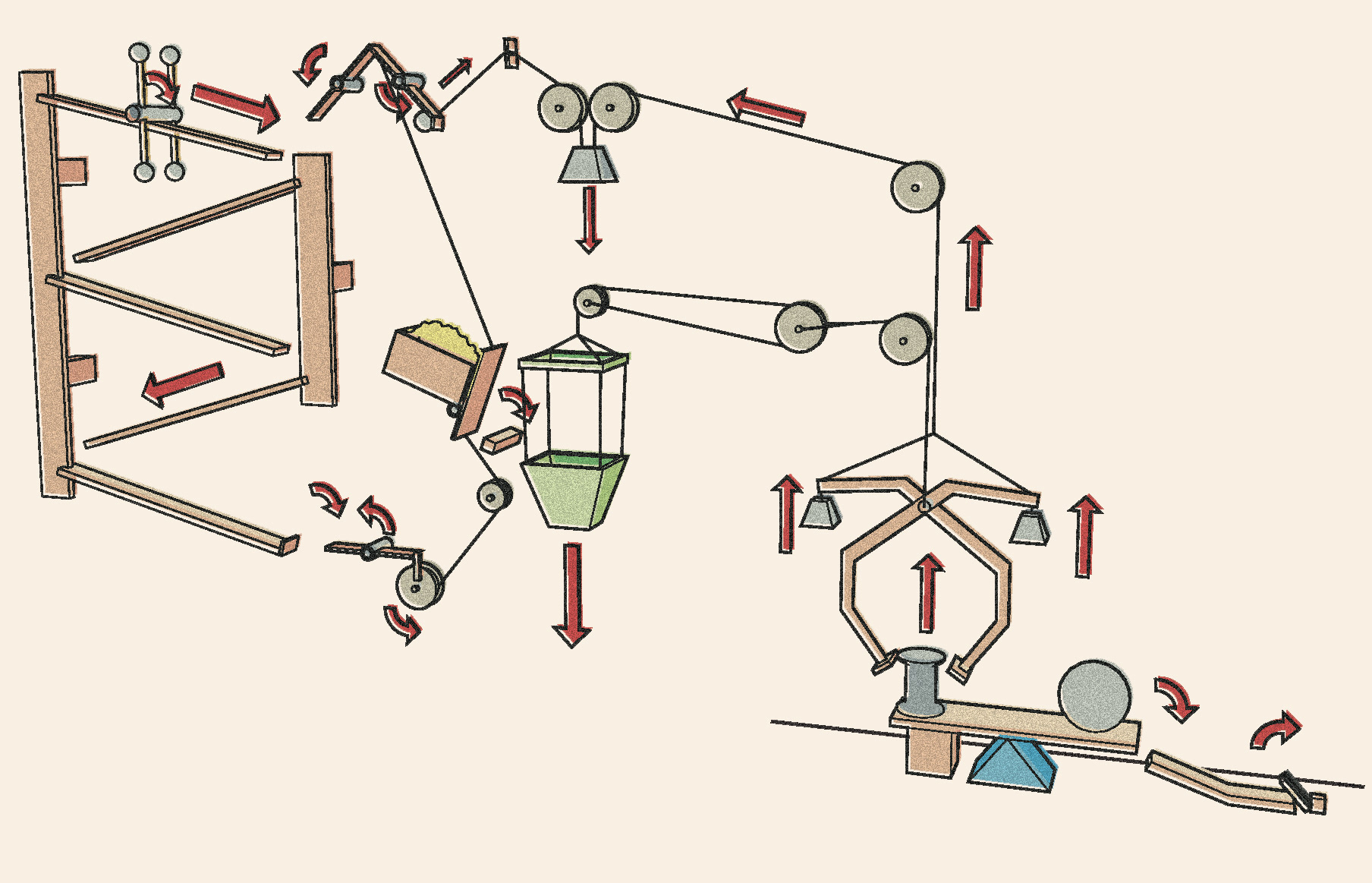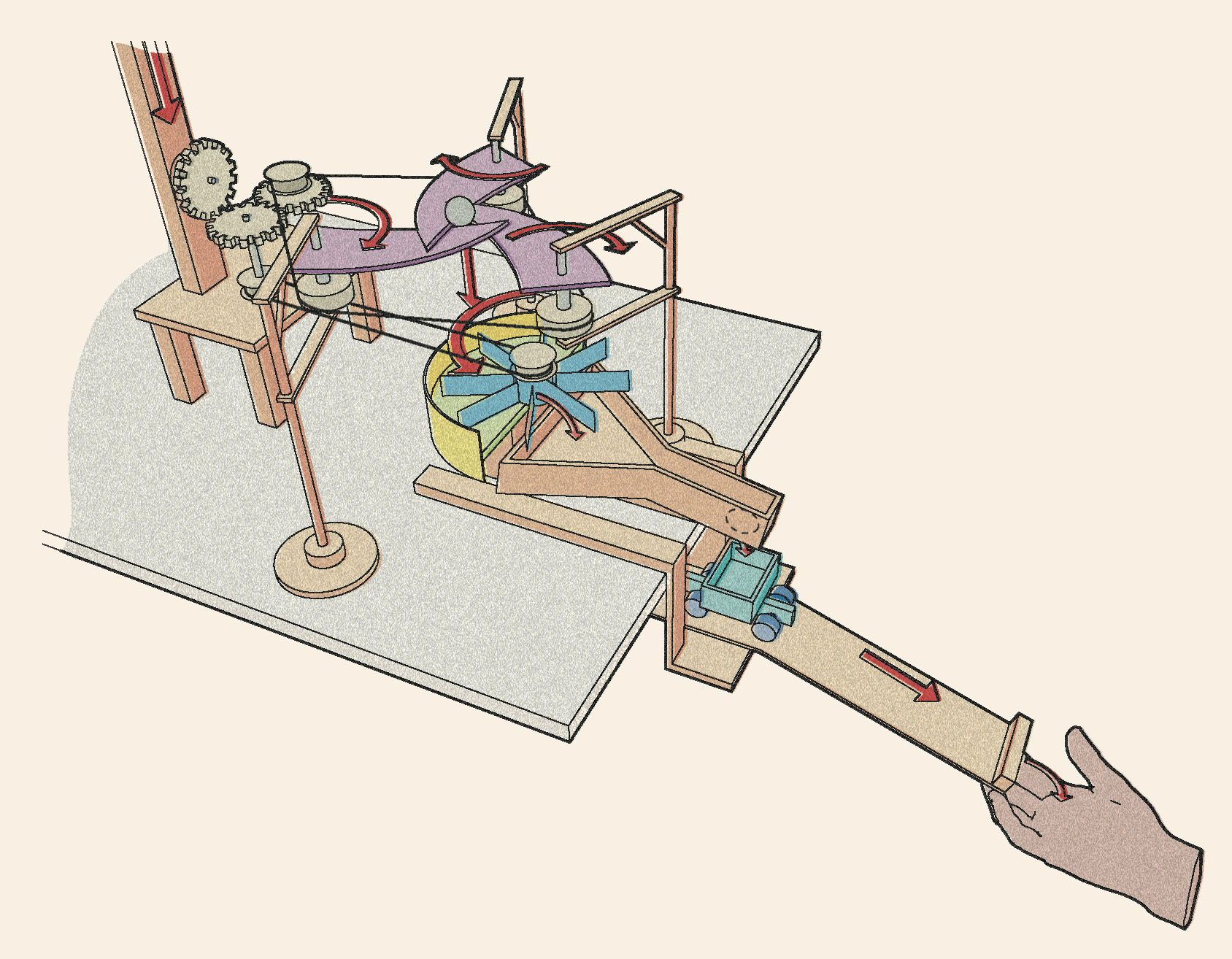 Design and illustration of contraptions to demonstrate the basic forces of Newtonian physics